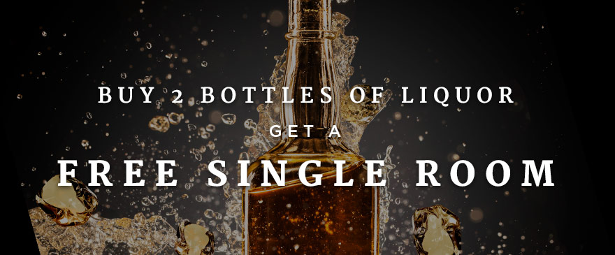 Buy 2 Bottles of Liquor and Get a Free Single Room Book your rooms while supplies last.